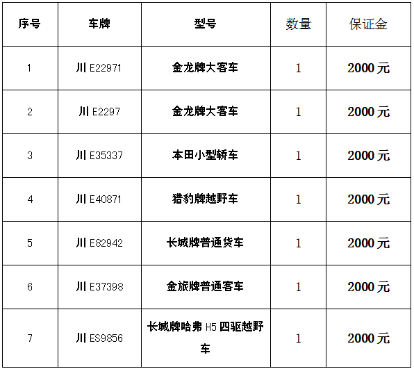 四、凡有意競買者請于2019年1月21日17:00以前將保證金匯入我公司指定賬戶(保證金以到賬為準),并持匯款依據(jù)及有效證件到我公司辦理競買手續(xù)和開通網絡競買權限。(戶名:瀘州市四方拍賣有限公司,賬號:51001637708051501502 開戶行:建行瀘州世紀城支行)。