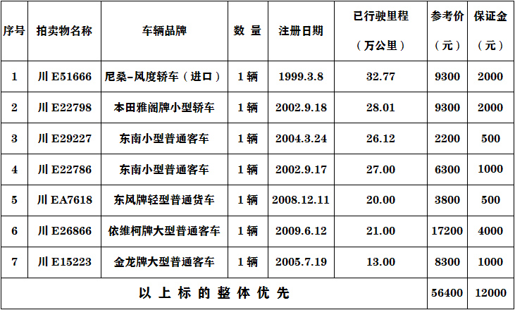 二、注意事項(xiàng):參與報(bào)廢車輛的競(jìng)買人必須具有收取報(bào)廢車輛的相關(guān)資質(zhì)。